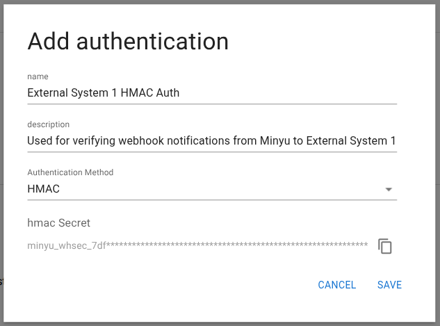 Authentication defines how Minyu cryptographically secures webhook deliveries to external systems.