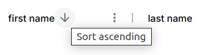 The Data Explorer table supports structural manipulation of result sets through per-column controls.