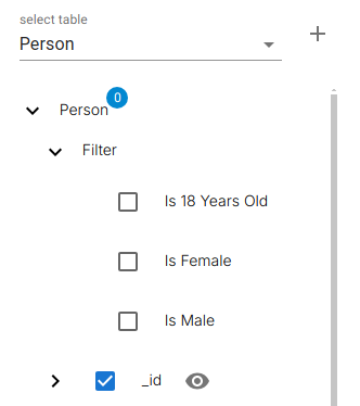 Each table node exposes a row filter control. This applies row-level predicates directly to the dataset.