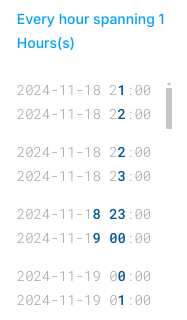 For example, configuring a sequence to repeat every hour with a one-hour duration generates the following slots: